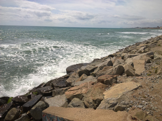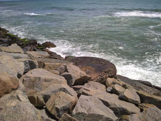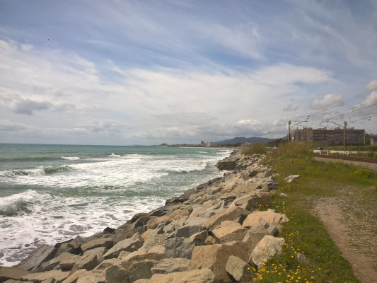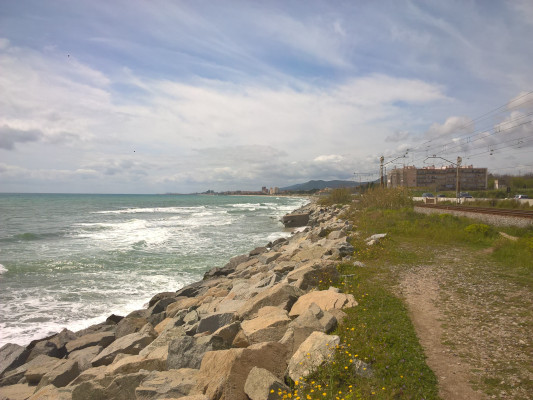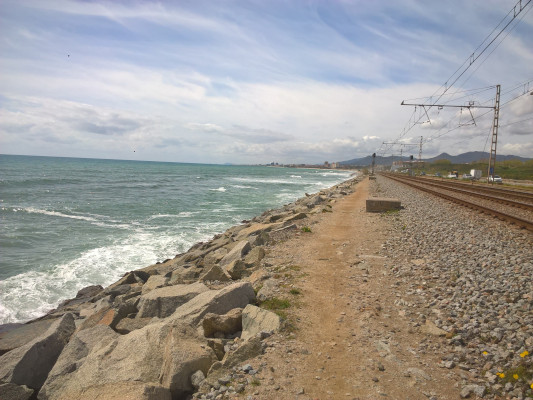 Niu de metralladores senzill de la gola del torrent de les Braixes. Es troba al mig de l’espigó que protegeix la via del tren, només s’aprecia la part superior del niu de metralladores.